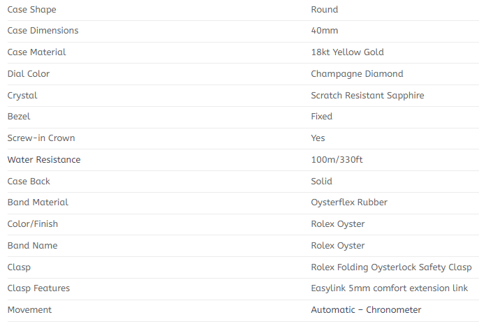 The index has factory-set diamonds with 18k yellow-gold hour marker surroundings except for the 3-, 6- and 9-hour position, which are 18k yellow-gold Arabic numerals (15, 30, 45 respectively).